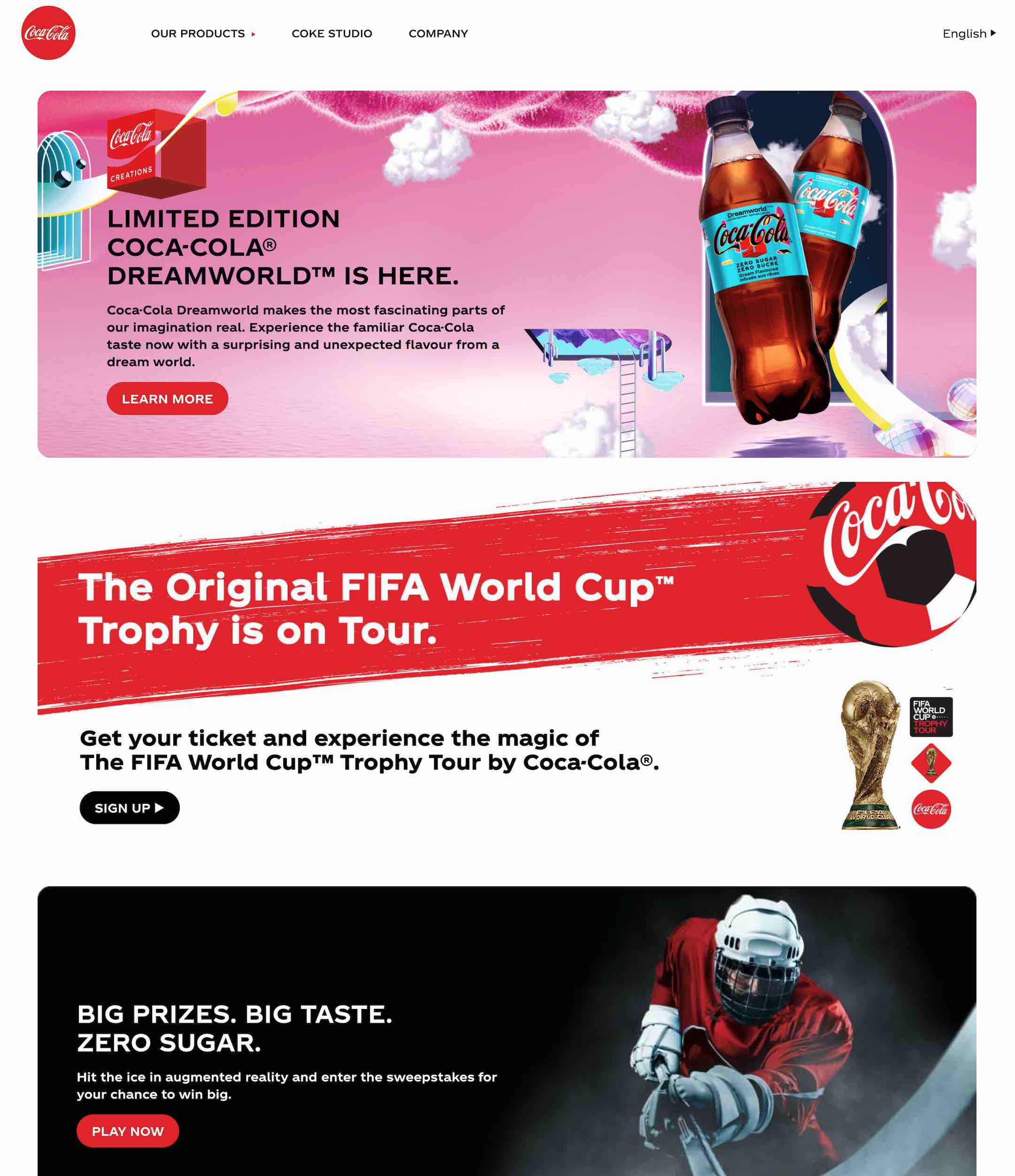 We have had the wonderful opportunity to work with Coca-Cola for the past few years, and continue to be the lead development and support team for their Canadian brand websites.
