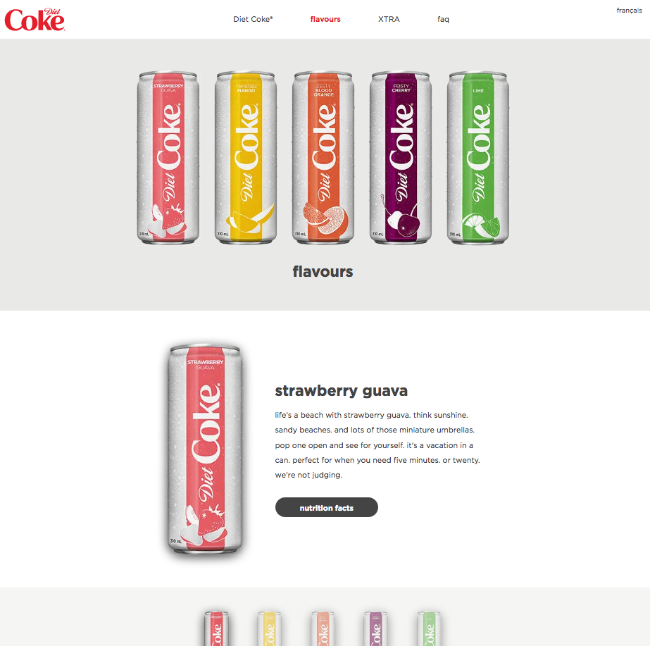 Kicking off the launch of Diet Coke XTRA, we designed a new Diet Coke website for Canada. Working with established brand guidelines, we worked hard to connect all of the brand marketing directives including adding e-Commerce.