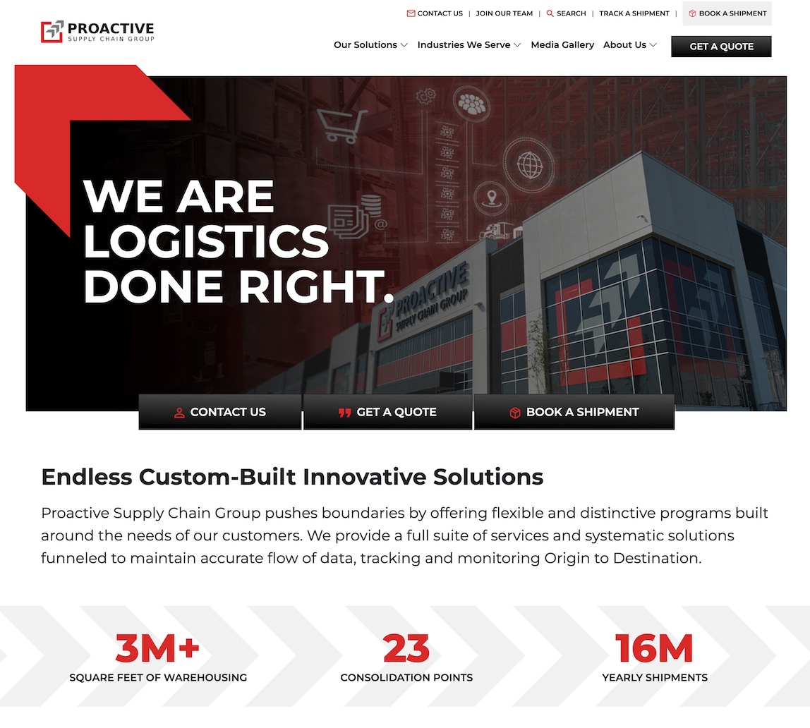 We were excited to partner with Proactive Supply Chain Group to redesign and build a modern website that effectively showcases their extensive solutions in warehousing, transportation, and logistics.