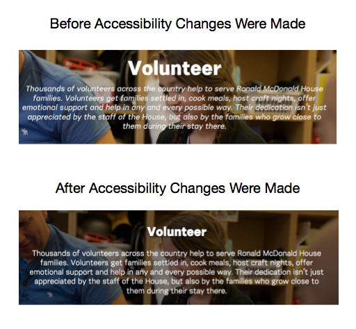 We were proud to support Ronald McDonald House in their initiative to ensure that their website met AODA compliance standards. In light of the stringent WCAG AA regulations, our team employed a combination of advanced software tools and thorough visual inspections to ensure adherence to key accessibility criteria, from color contrast to keyboard navigation.